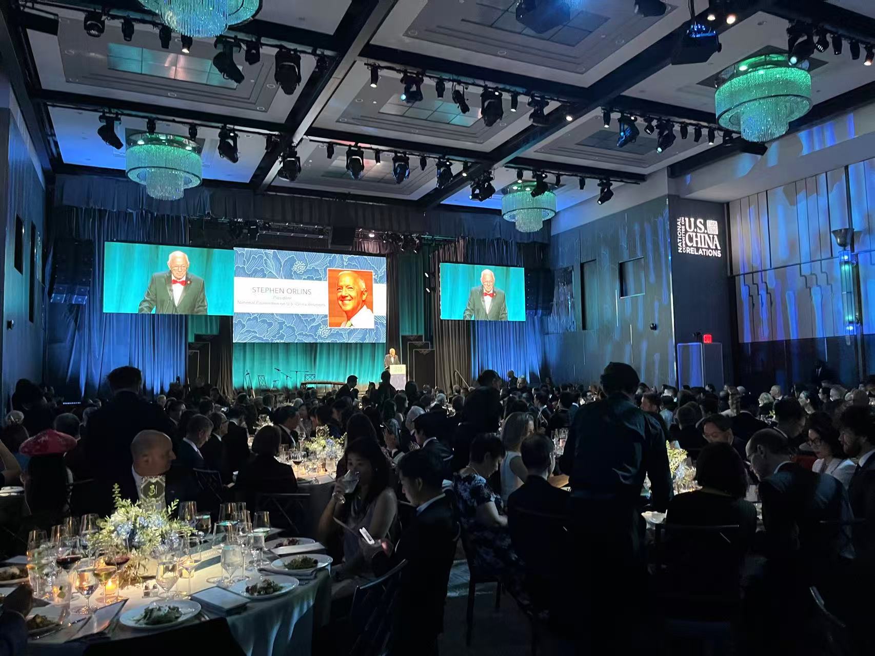 【华视国际传媒GCTV纽约讯】10月14日晚,美中关系全国委员会年度颁奖晚宴在纽约隆重举办,中美各界人士300多人出席。美中关系全国委员会会长斯蒂芬·欧伦斯,中国驻美大使谢峰、全球华人女性的榜样 羽西以及北京画院艺术家代表等出席。与会嘉宾表示,世界依赖稳定的美中关系,稳定健康的美中关系符合两国利益,呼吁共同推动美中关系行稳致远。美中关系全国委员会会长斯蒂芬·欧伦斯强调,美中共同合作解决两国人民以及世界所面临的问题,比以往任何时候都更加重要。